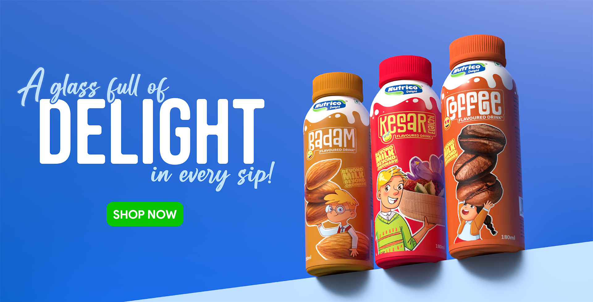 Nutrico Delight is a premium dairy brand that brings you flavored drink made with real ingredients for an authentic and indulgent experience. Every bottle is crafted with the richness of pure dairy, infused with the goodness of real fruits, nuts, and flavors—no artificial shortcuts, just the real deal. Whether it’s the luscious sweetness of ripe mangoes, the deep richness of cocoa, or the comforting warmth of cardamom, we let nature do the talking.